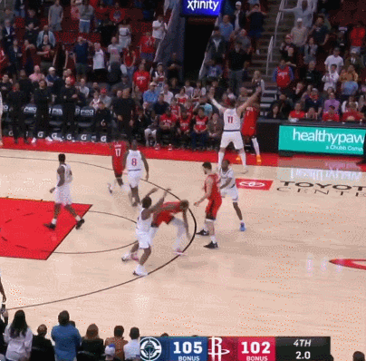但莱昂纳德操作的时候还增加了一些欺骗性,他没有选择直接向右生突,而是先佯装突左路,用一个转身成功摆脱了阿门·汤普森,最后还吸引泰特过来赔了一个2+1。